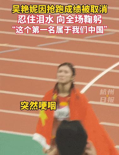 可不巧的是,比赛刚开始,吴燕妮便因抢跑被裁判叫停了,但经过裁判讨论,最终还是让吴燕妮回到了赛场,继续参加比赛,等到比赛结束之后,才做裁决。