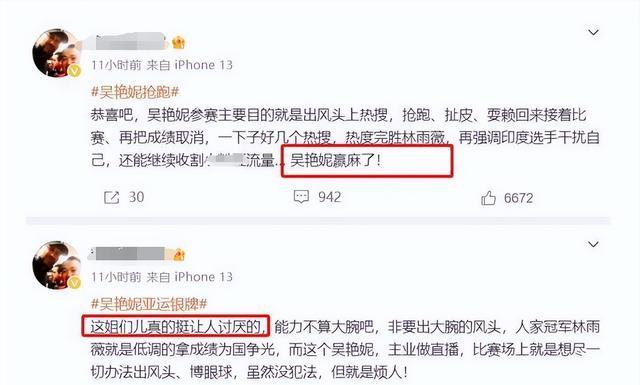 在吴燕妮道歉之后,网上有不少大V开始疯狂带节奏,指责吴燕妮的“抢跑”行为,他们认为,吴燕妮的目的并不单纯,其目的就是出风头,上热搜,通过推诿扯皮耍赖来重回赛场,再把成绩取消,一下子上好几个热搜,最终博取流量,比赛场上想尽一切办法出风头,博眼球。