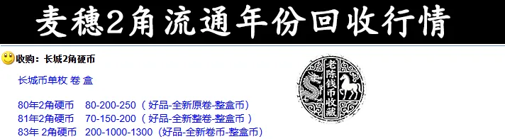 80年、81年和83年的麦穗2角现在好品报价分别在80元、70元以及200元一枚。