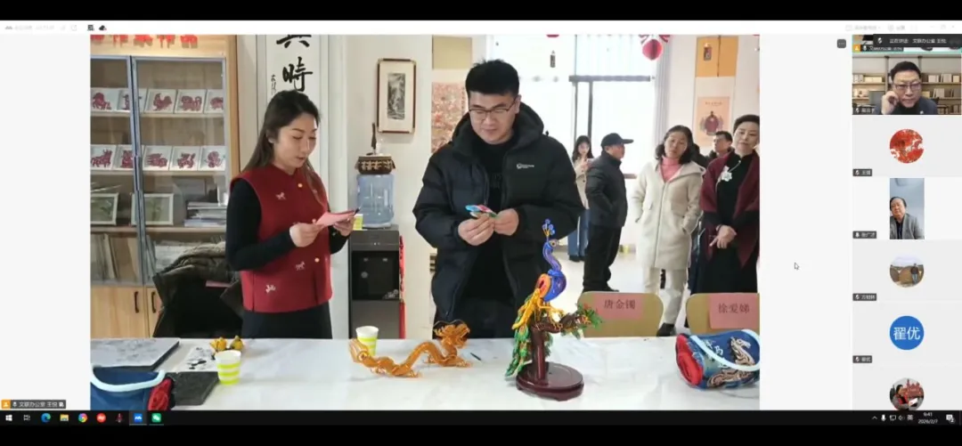 据悉,此次活动是省级学会与基层文联携手,探索“线上线下数智化结合”国际文化交流新模式的创新实践。活动通过腾讯会议平台实现多地区实时联动,前期历经两次全流程技术测试,确保了跨洋交流的顺畅无阻。活动的成功举办,不仅为沛县市民献上了一场高品质的新春文化盛宴,增强了群众的文化认同感与自豪感,更有效提升了“沛县—汉文化原点”的城市品牌影响力,为后续中美艺术界的深度合作奠定了坚实基础。