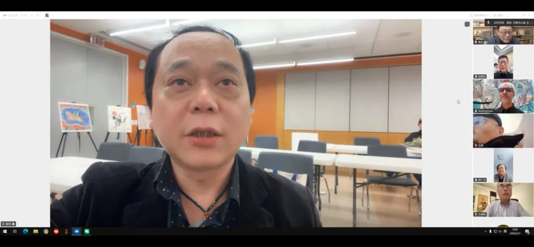 北京时间上午8:30,活动准时启动。随着沛筑古乐悠扬而起,古朴雄浑的旋律穿越时空,拉开了“马年启幕·云端对话”的序幕。李雨航在主会场致辞中表示,此次文艺汇是沛县文化“走出去”与“请进来”的重要实践,希望以艺术为媒,让千年汉韵在跨国交流中焕发时代新活力。随后,纽约、洛杉矶、达拉斯、艾比林、南京等地的嘉宾通过云端依次致辞。中国画学会(美国)荣誉会长大泽人、会长赵建民,著名翻译家方柏林博士分别分享了海外汉文化传播的实践心得,对活动的创新形式与深远意义给予高度评价;江苏省中国画学会监事长王强表示,今后学会将继续更深入的推动中外民间艺术交流活动,让海外各界人士加深对汉文化的了解和理解。美国艾比林基督大学艺术与设计系主任罗伯特·格林教授盛赞汉文化的独特艺术魅力,直言此次交流为中美艺术界搭建了跨越重洋的珍贵对话平台,更真挚表达了亲赴沛县、沉浸式感受汉文化魅力的热切期盼。