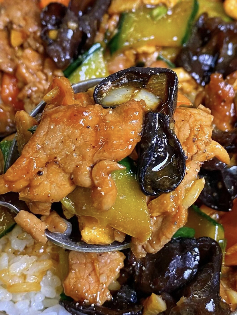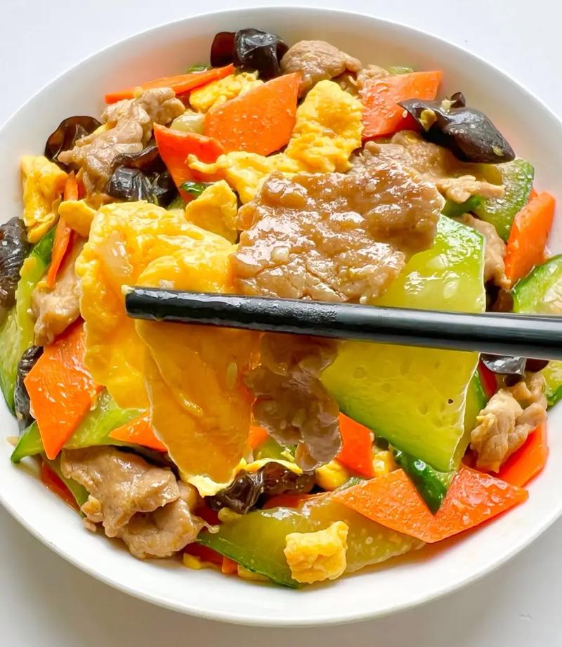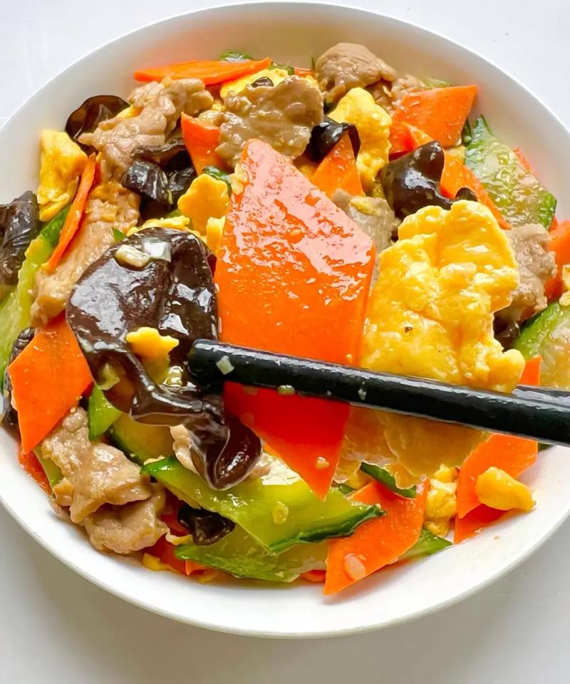 - 合并炒鸡蛋:把之前炒好的鸡蛋倒入锅中,和所有的食材一起翻炒均匀。这时候,整个厨房都弥漫着木须肉的香气,让人忍不住流口水!