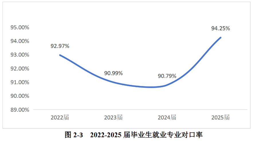 毕业生就业:2022-2025届毕业生毕业去向落实率、专业对口率整体保持基本稳定且较高,薪资逐年攀高。