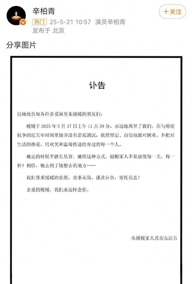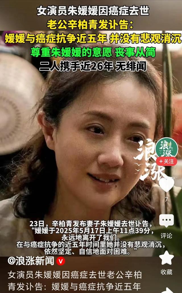许多人还来不及告别,就已经离去,这句话用在演员朱媛媛身上在适合不过了,在5月21日的时候,演员辛柏青在社交平台上发布了一则讣告。