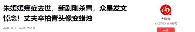 朱媛媛癌症去世,新剧刚杀青,众星发文悼念!丈夫辛柏青头像变蜡烛 -大河报
