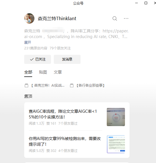 大家在公众号可以找到森克兰特AIGC大神开发的降AI率网站。