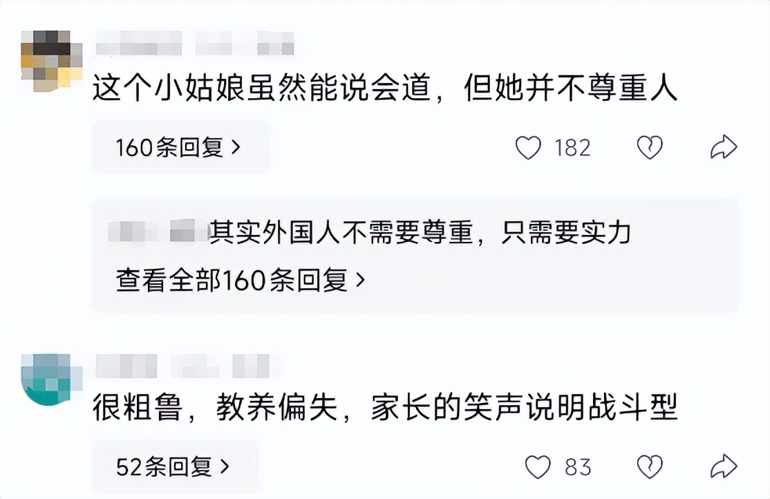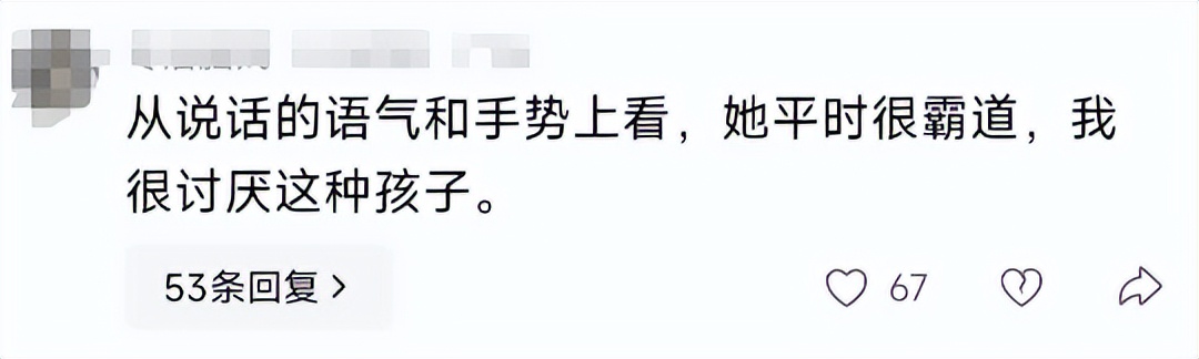 有的网友认为女孩说话的语气和手势太不尊重人,平时可能会很霸道让人生厌。