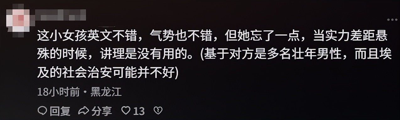 这一幕也让不少网友担心,虽然女孩的做法很勇敢但也很危险,尤其是在人生地不熟的国外,很容易引起冲突,让自己受到伤害。