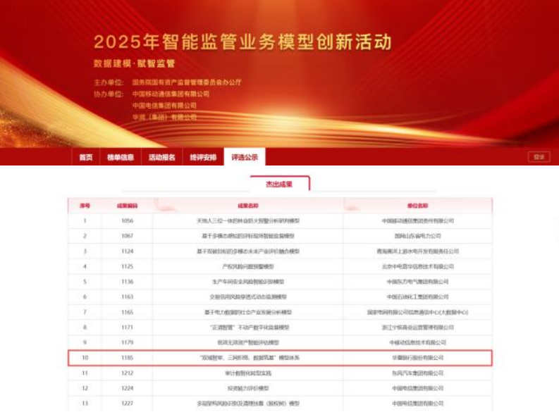 近日,在国务院国资委主办的“数据建模 赋智监管”擂台赛中,华夏银行自主研发的“双域智审、三网织络、数据筑基”审计模型体系经过多轮激烈角逐,从全国421家央企国企提交的772个课题中脱颖而出,荣获“杰出成果奖”,成为该奖项中唯一的银行业代表。这一成绩不仅展现了华夏银行在金融科技领域的创新实力,更是国有企业以数字化手段提升治理效能、筑牢风险防线的生动实践。