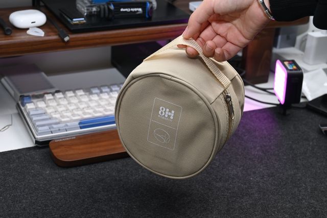 包装盒内是一个桶状的的米色收纳包,质感不错,我怎么都没想到,这么大的U型枕居然能压缩成这么小,装进如此小巧的收纳包里。