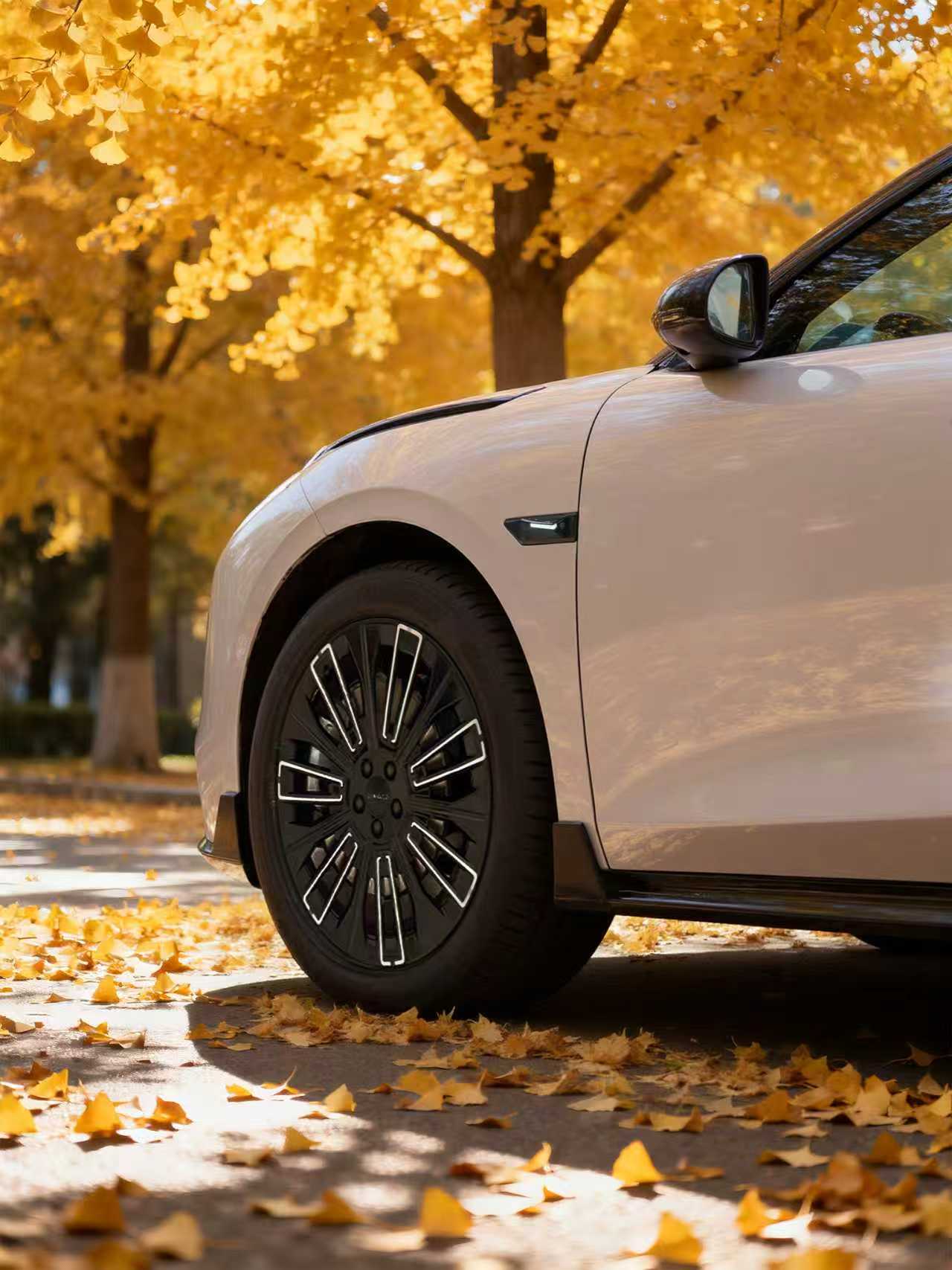 如果说色彩是一种语言,那么天云米通过双珠光材质展现出的“随光而变”,则让这一语言更具层次。车辆在户外光下显得轻盈,带着微微的暖意;而在阴影环境中又恢复沉静,甚至带着一点低调而松弛的高级感。不同光线下呈现“一车双貌”,既贴合“云舞白”的空灵意象,也赋予车辆更丰富的情绪表达方式。