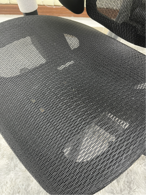 椅子采用的高弹性细密网布,孔洞也比较多,同时底盘的镂空结构设计也多,因此材质透气性是不错的,坐久了的闷热感不会很明显。