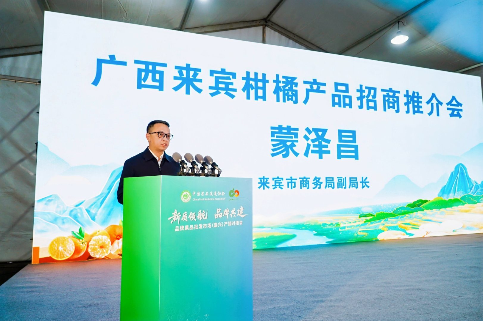 来宾市商务局副局长蒙泽昌在致辞中表示,近年来,来宾市锚定乡村振兴战略航向,将柑橘产业做为富民兴市的支柱引擎精心培育,形成了以沃柑、砂糖橘、茂谷柑为主,脆蜜金桔、黄金贡柚等品种协同的“来宾特色柑橘”矩阵。嘉兴市作为长三角城市群的重要节点城市,商贸物流四通八达,消费市场辐射广阔,希望通过此次活动,推动“来宾柑橘”与“华东市场”深度对接,促进两地企业深化合作,共同探索“基地直供+品牌共建”“线上推广+线下展销”等新模式,进一步助力来宾柑橘拓宽华东市场。