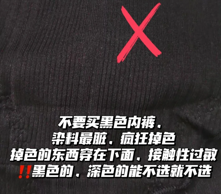 建议大家还是尽量不要选择深色内裤,尤其是一些价格比较便宜的深色内裤。
