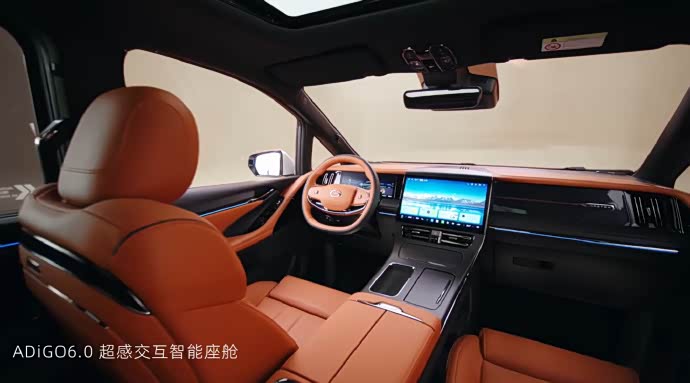 内饰方面,整体采用环抱式造型设计,配备12.3英寸内嵌式液晶仪表与15.6英寸悬浮式中控屏,科技感较为突出。中控通道区域采用“一横两纵”布局,具体为横向翻盖储物格、纵向单无线充电面板与纵向双杯架的组合形式;内饰颜色提供“烟波浩渺”浅灰与“马会庄园”红棕两种选择,细节处加入镀铬饰条提升精致感。