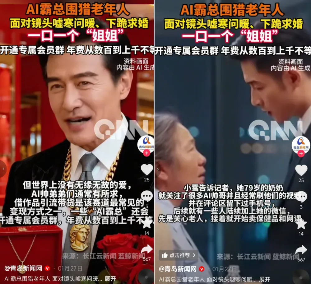 AI霸总们的小嘴,一个一个就跟抹了蜜似的,完全把大姨们哄得找不到北了,用退休金买回来一车一车的驼奶粉、乳胶枕头。