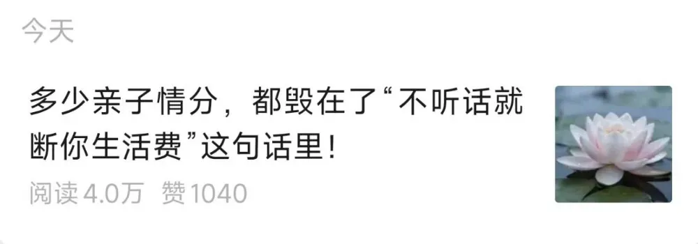 “多少亲子情分,都毁在了‘不听话就断你生活费’这句话里!”