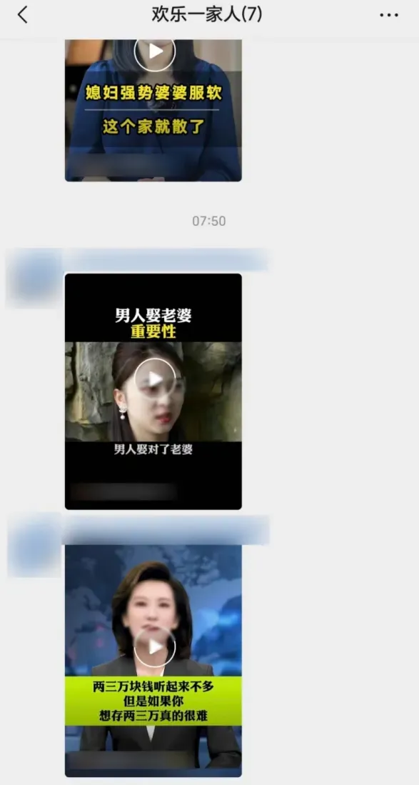 特别是,当你看见爹妈爷奶在“相亲相爱”家族群里转发的99+伪科普、毒鸡汤、催婚催生小作文以及营销号视频时,那可真是两眼一黑又一黑,人都要碎了。