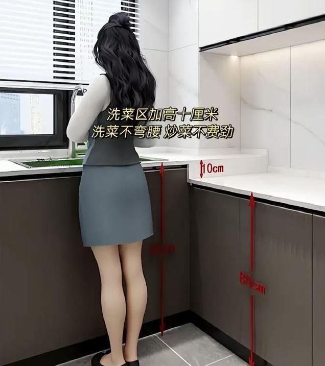 因为高低台面的设计,可以让我们在清洗灶台和墙面时,无需弯腰,就能轻松完成工作,大大提升了清洗的效率和舒适度。