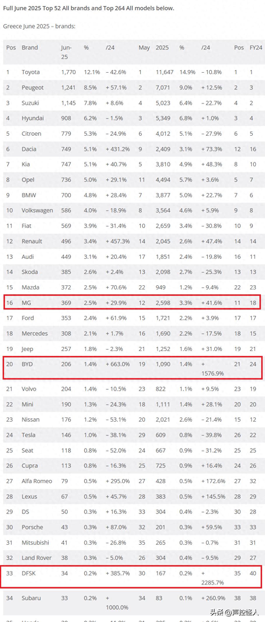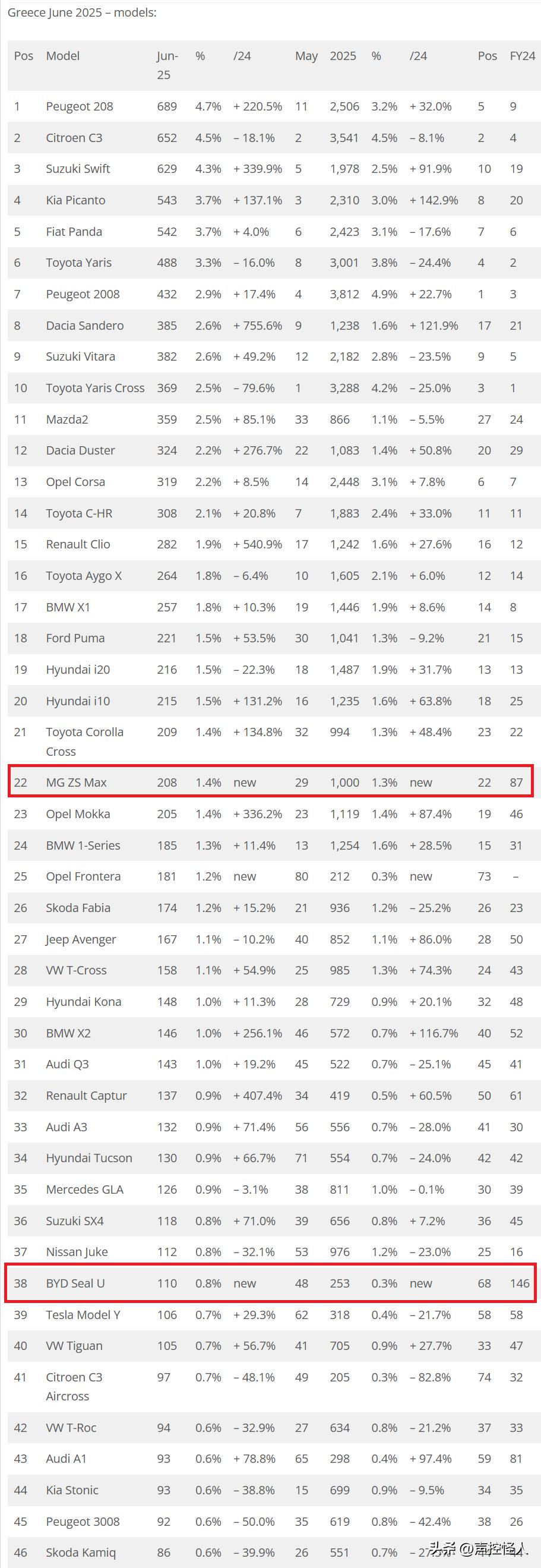 202506希腊最销车型排行榜