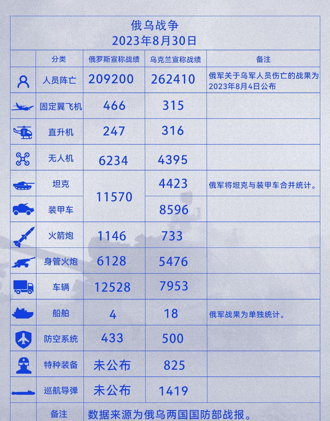 (俄乌双方装备战损统计表)