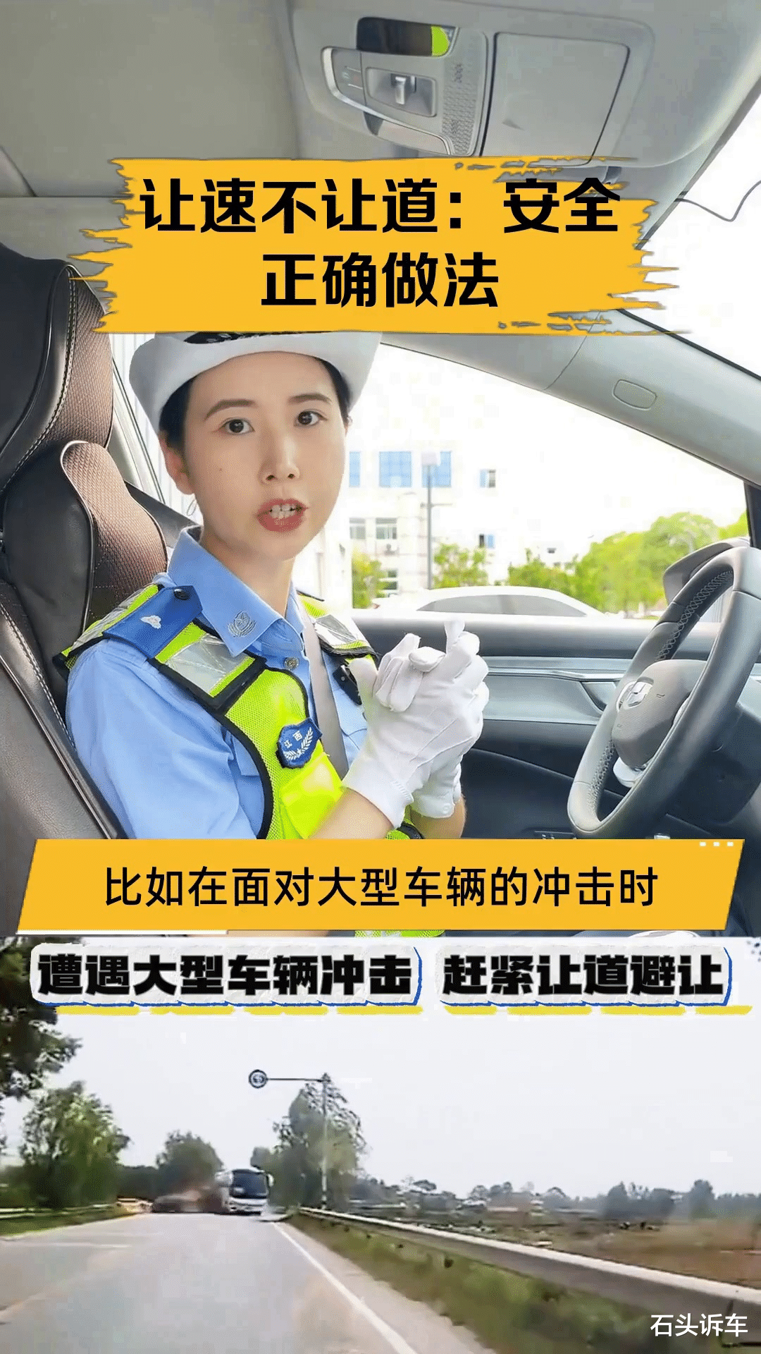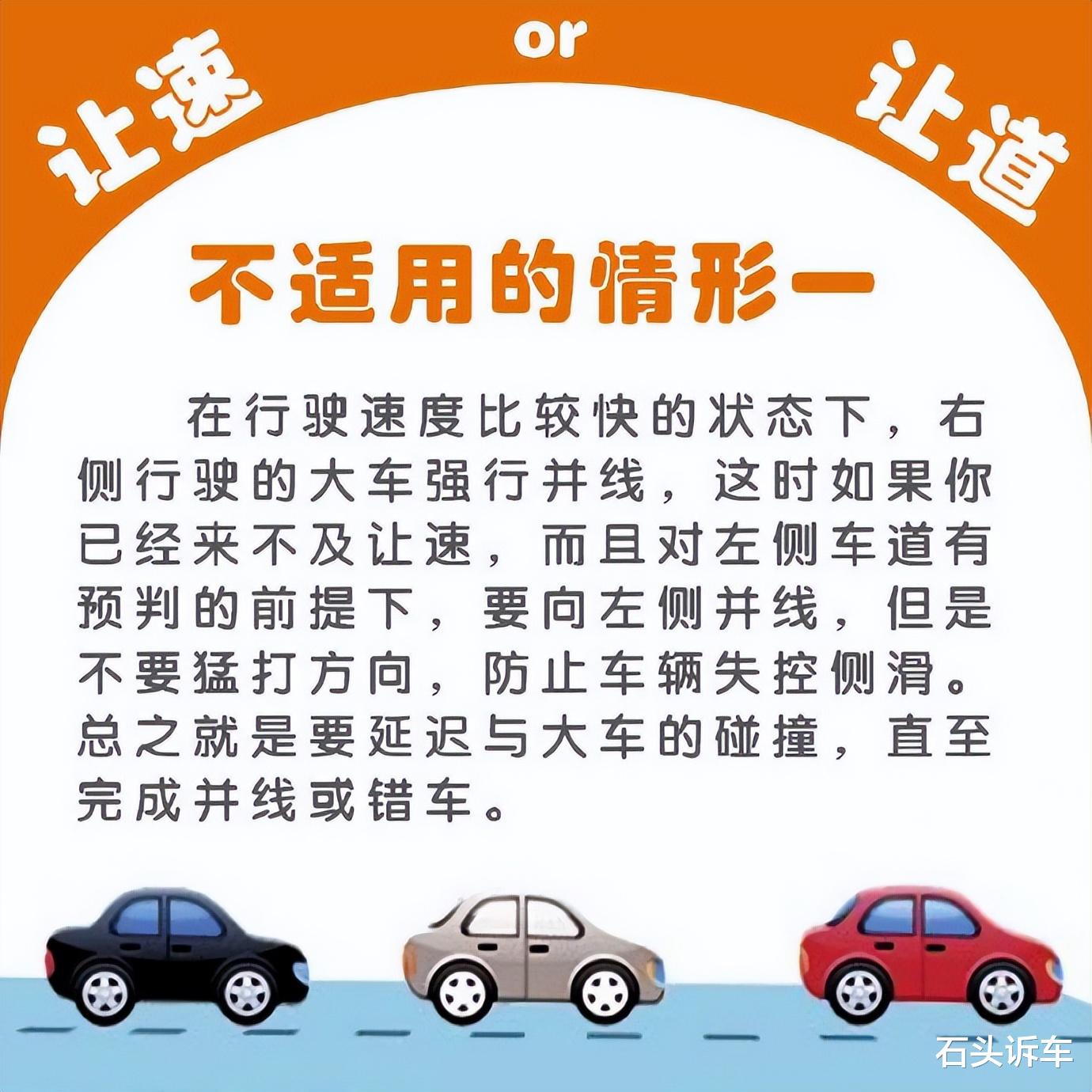 让速不让道不是绝对的,不要死死地抓住这个原则,而是要根据具体情况做出具体操作,有可能是让速不让道,有可能是变道避让,没有绝对的正确,只有绝对的安全第一。