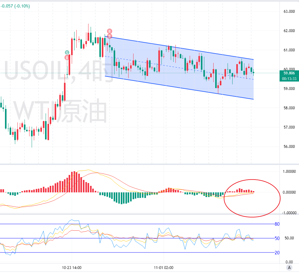 原油:上方阻力关注60.3-60.5,下方支撑看59.6-59.9。