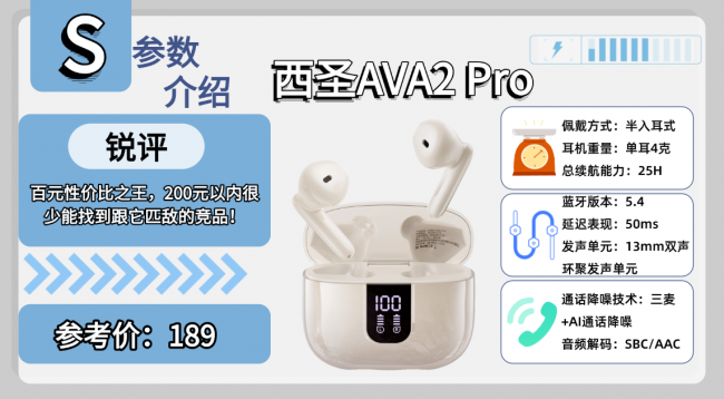 强推机型①:西圣AVA2 Pro蓝牙耳机