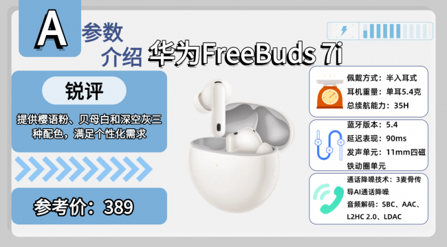 强推机型②:华 为F reeBuds 7i蓝牙耳机