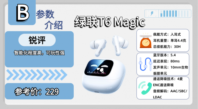 强推机型⑦:绿 联T 6 Magic蓝牙耳机