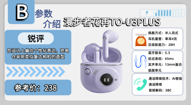 强推机型⑤:漫 步者花 再T O-U3PLUS蓝牙耳机