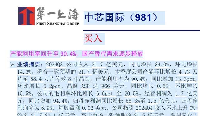 在第三季度,中芯国际的收入为 21.7 亿美元,同比增长 34.0%,环比增长14.2%,符合一致预期的 21.7 亿美元。