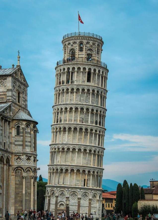 比萨斜塔的历史可以追溯到1173年,当时比萨共和国为了展示其繁荣和实力,决定建造一座宏伟的钟楼。斜塔的建设历时近两个世纪,但由于地基下沉和地质条件的影响,塔身逐渐开始倾斜。1372年,斜塔最终完工,其倾斜角度达到了5.5度。尽管如此,斜塔并没有倒塌,反而因其独特的倾斜姿态而闻名于世。1990年至2001年间,为了保护斜塔,进行了大规模的修复工程,成功将倾斜角度减少到3.9度,确保了斜塔的安全和稳定。