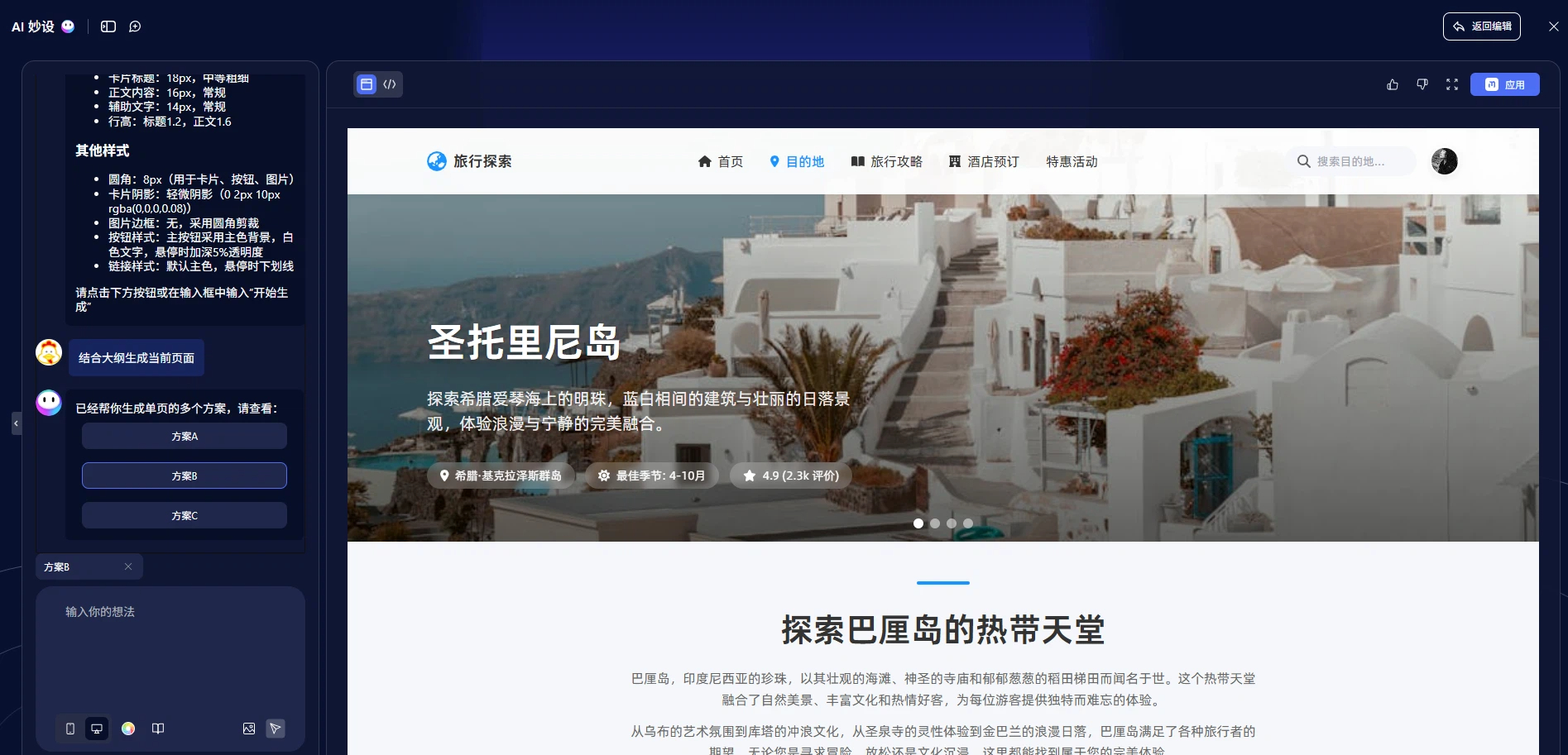 4)AI生成的设计稿可一键转换为前端代码,设计交付0延时;