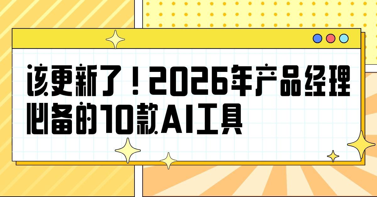 想要做到这点的第一步就是更新你的工具库,以下10款AI工具,是真正能帮你提高工作效率、洞察深度和业务价值的利器,也将是2026年产品经理拉开差距的关键。