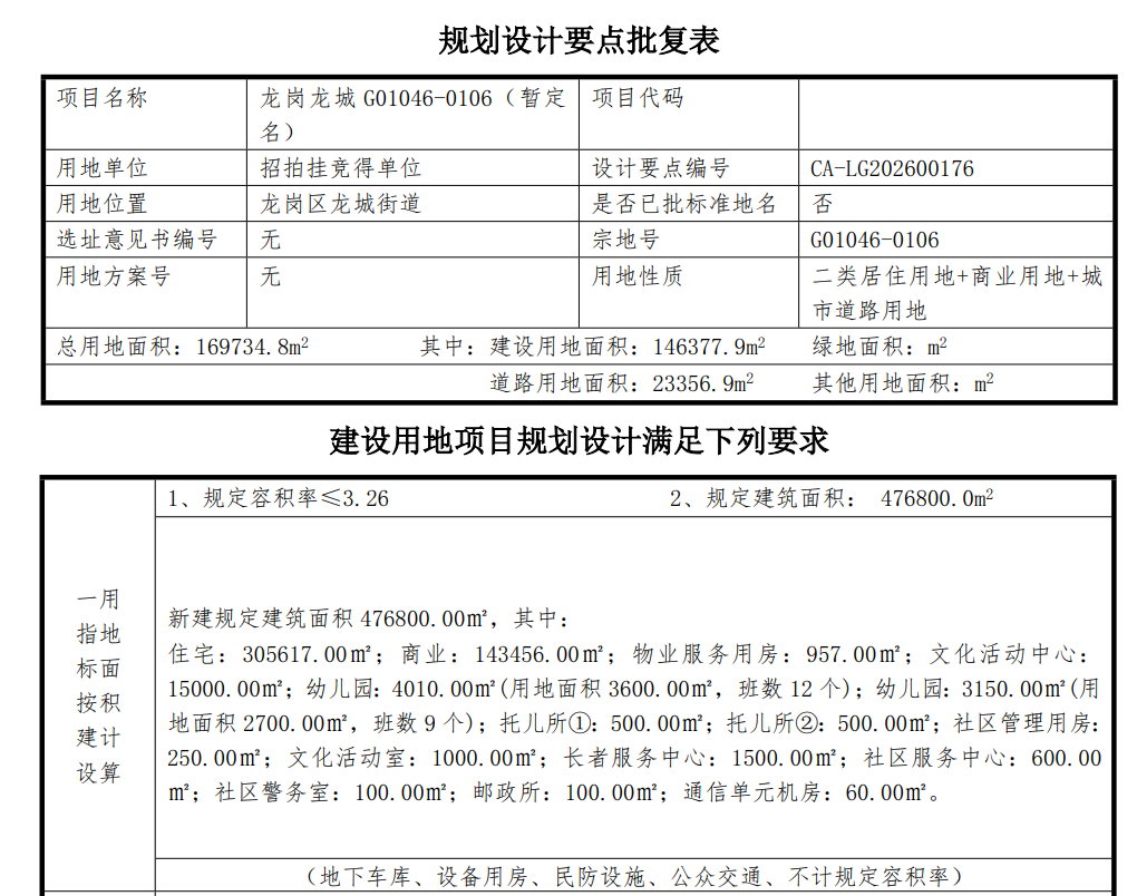 与最初规划相比,地块的新方案发生了根本性转变。土地性质从纯商业用地调整为“住宅+商业+道路”混合用地。在总计约47.68万平方米的建筑面积中,住宅占比跃升至64%,成为绝对主角,商业面积则相应缩减。同时,整体容积率也从约4.17下调至3.26,更符合当前市场对居住品质的需求。