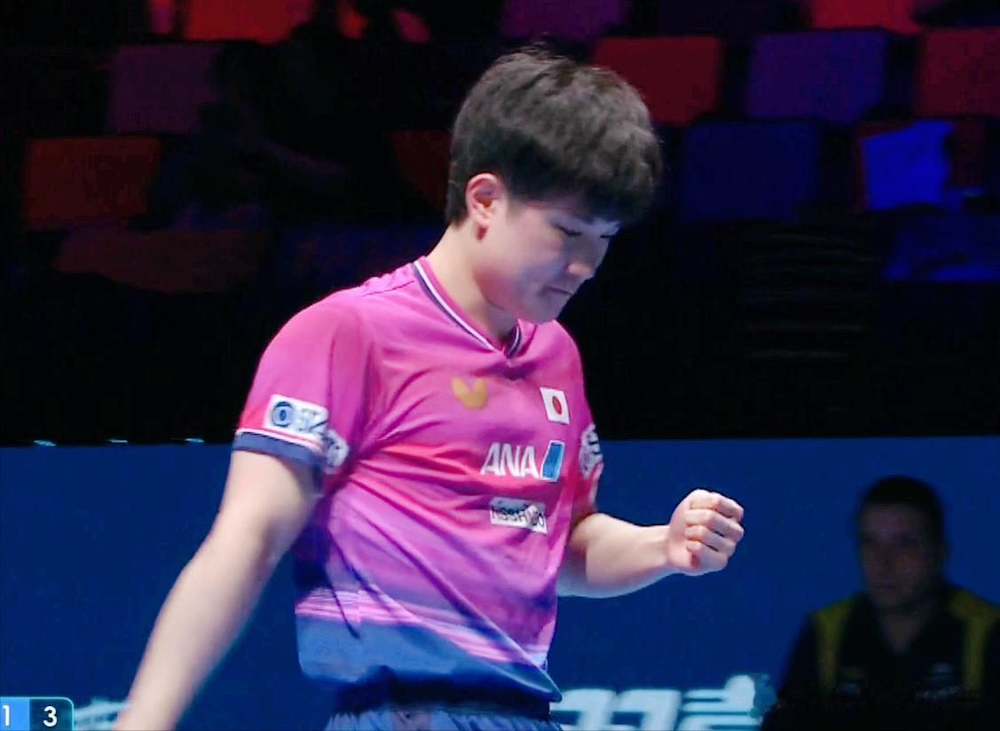 第三局看到希望的小蘑菇,被早田希娜打了个11:5。