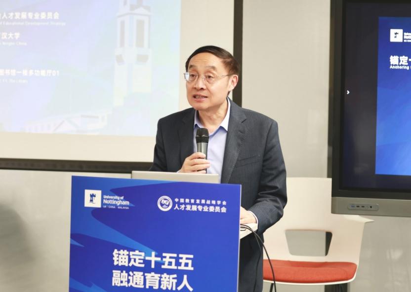 中国教育发展战略学会常务副会长、教育部原科技发展中心主任李志民致辞。他指出,教育强国的本质是人才强国,拔尖创新人才是实现高水平科技自立自强的核心支撑。面向“十五五”,需从贯通培养链条、突破学科边界、重构评价体系、培育时代新人四个维度入手,久久为功,持续发力,推动拔尖创新人才培养取得突破性进展。