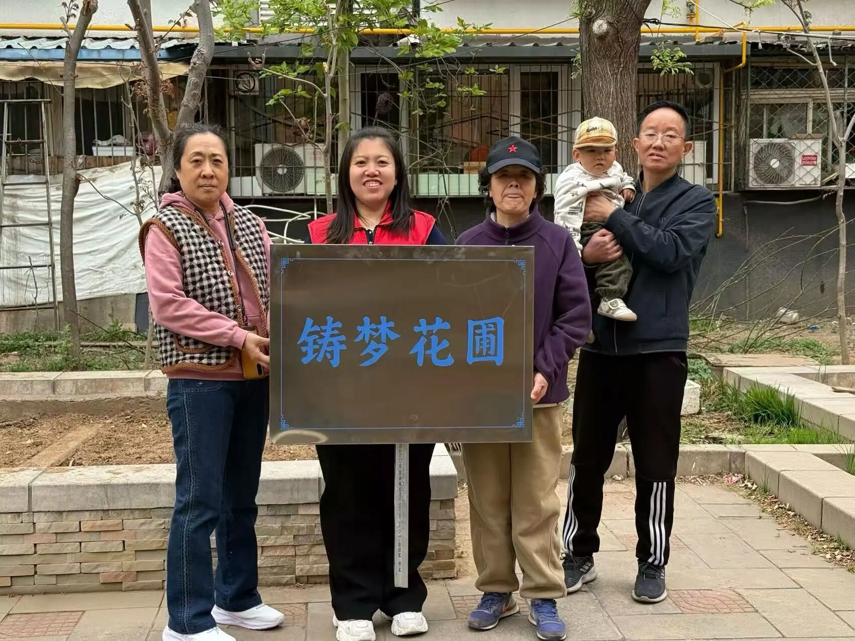 面对难题,铸造村社区积极发挥议事协商作用,与居民多次沟通探讨解决方案,并主动挖掘社区内的能人巧匠。他们找到居住在1号楼的“养花高手”张师傅,邀请他带领居民一起动手改造绿地。在社区的协调组织下,大家齐心协力翻整土地,种下郁金香种球,让这片土地重新焕发生机,并获得了一个充满希望的名字——“铸梦花圃”。