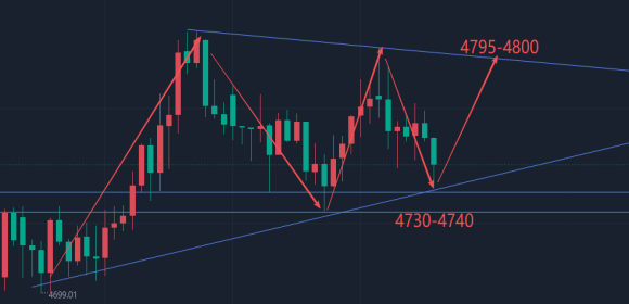 建议黄金回踩下方4730-4740附近轻仓入场做多,止损4690,目标先看4780,突破看4800;如果做空的话,建议反弹到上方4795-4800分批短空,止损4830,目标看回4760-4750。(策略建议仅供参考,盈亏自负,做单严格做好风控,设置止损和目标位置,杜绝扛单)