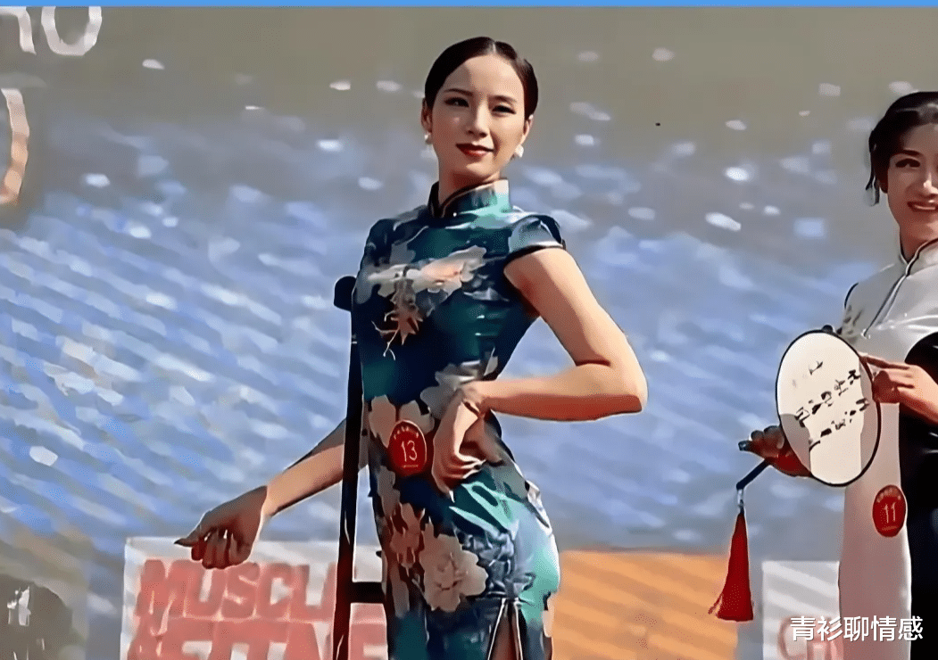 她身穿团花旗袍,身姿优雅、落落大方赢得了小组赛头名。