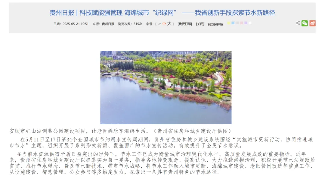 在全国第34个城市节约用水宣传周期间,贵州省住房和城乡建设厅围绕“实施城市更新行动,协同推进城市节水”主题,组织开展了一系列型式新颖、覆盖面广的节水宣传活动,将节水工作融入城市更新、海绵城市建设、老旧管网改造等重点工作中,多维度发力,探索出专属贵州的特色节水路径。
