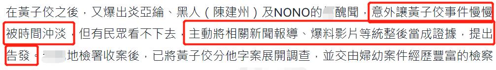 不过,细看媒体报道,会发现黄子佼遭到立案调查,并不是检方主动,而是不止一位普通民众向他们检举告发,当地还有不少正义人士的,眼见着黄子佼骚扰风波有被时间冲淡的趋势,就赶紧搜集了相关报道和视频,整理成了证据,提交给了检方。