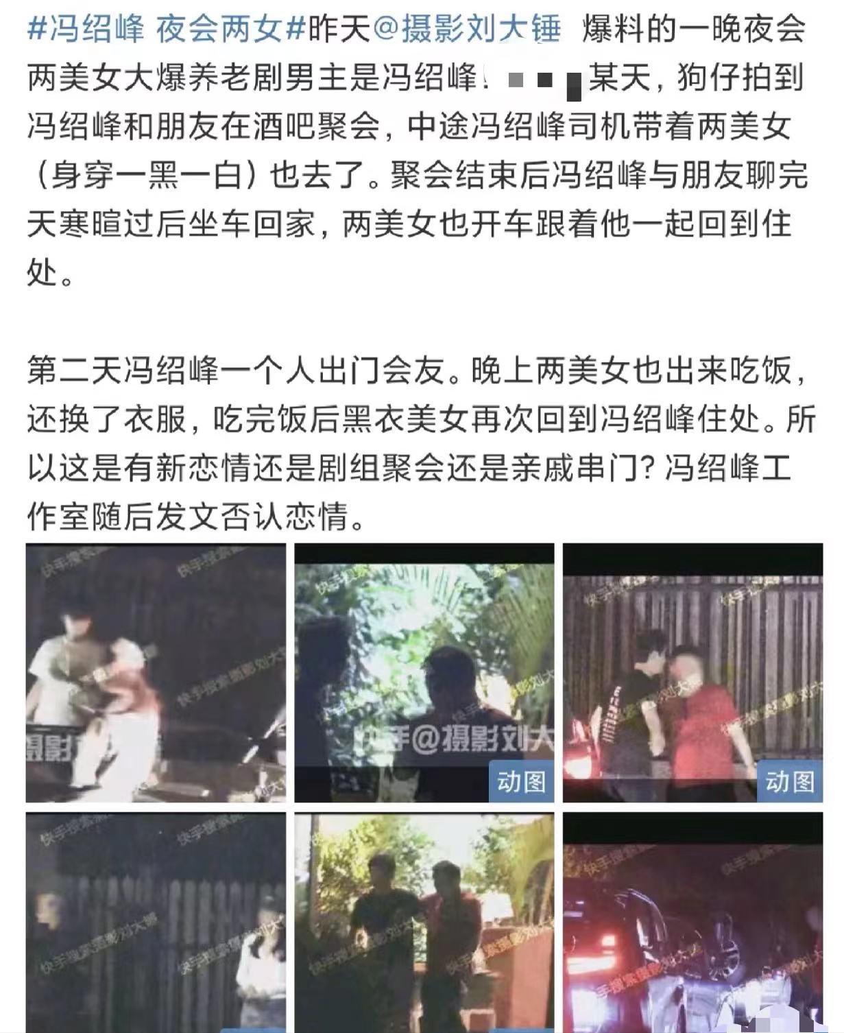 而在今年4月份,有记者拍到冯绍峰与某导演在酒吧聚会,一同随行的还有两位年轻美女,事后两位美女还跟随冯绍峰一同回家,狗仔为此蹲守一夜也没看到两位女生启程离开,直到次日晚上,两个女生才从冯绍峰家中出门,不过此事曝光之后,冯绍峰工作室曾火速辟谣。