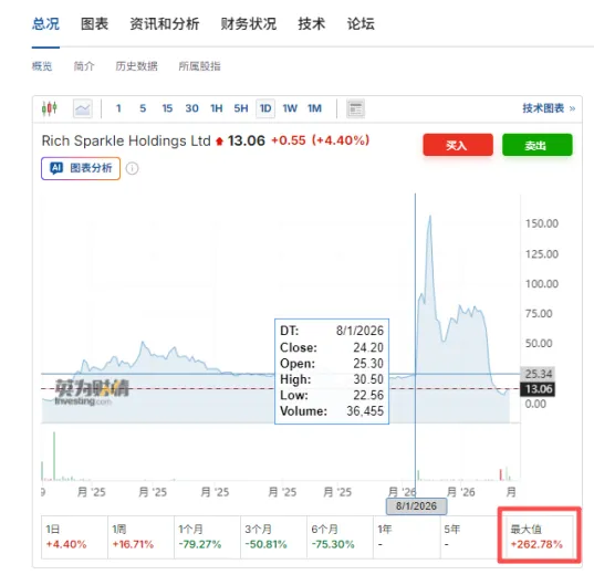 另有信息显示,被借壳的Rich Sparkle公司,其原先主业为金融印刷(涉及招股书印刷、翻译等内容),其于2025年7月登陆纳斯达克,初始发行价4美元/股,市值5000万美元。其因规模小、业务简单且无复杂负债等,被业内认为是绝佳的“上市载体”。