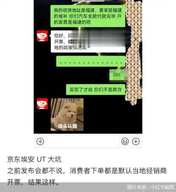 但在佳佳看来,自己所在的江苏省购车补贴有3000元,“我是租电购买,所以比京东给出的2000元补贴要合适”。在社交媒体上也有其他消费者对埃安UT Super的开票问题提出了相同质疑:消费者已经成功申请到所在地的地方补贴,且高于京东方面提供的补贴,但由于开票地不一致无法享受,这将导致购车优惠减少。
