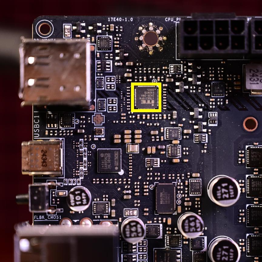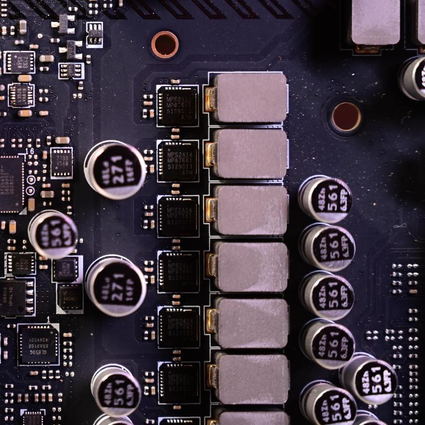 供电部分,主板供电规模为12+1+1,DrMOS芯片为芯源MP87661,单项能提供60A电流;