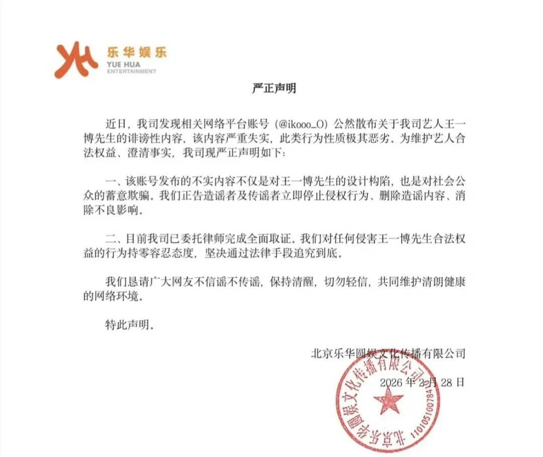 起因是:有人伪造王一博×綦美合聊天记录,乐华光速辟谣定性“恶意构陷”,造谣者自曝身份证翻车。