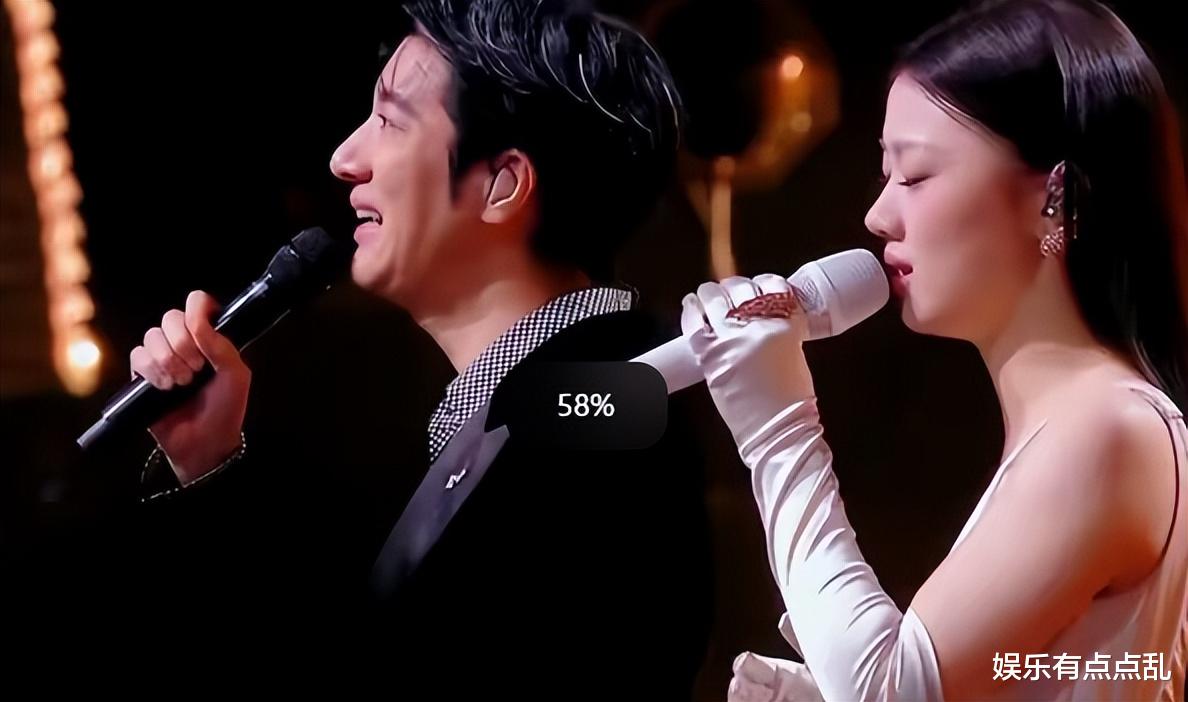 而王力宏和单依纯合唱的一首《落叶归根》,舞台上的单依纯,不管是造型妆容还是仪态管理都很在线。小姐姐也是全开麦唱的君,真好听。有韵味,又特别。那个音响感觉在观那里是很浑浊的混响,上一个把王力宏逼成“表情包”的,还是谭维维。