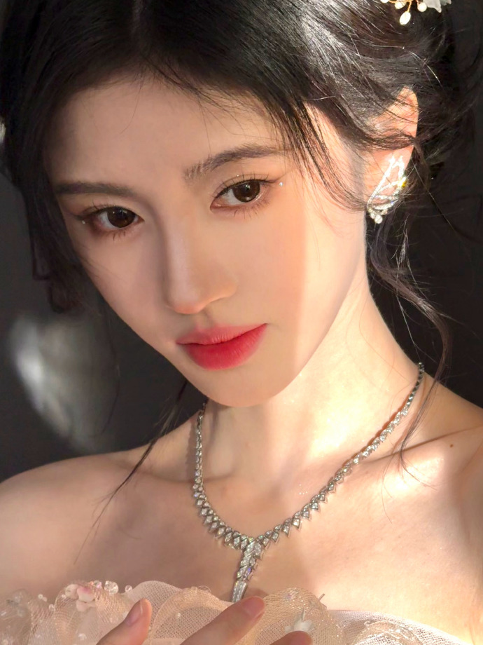 抹胸设计巧妙地展现了她纤细的肩颈线条,同时搭配上华丽的珠宝首饰,整体造型既梦幻又不失高级感。她的形象宛如神话中的仙子,犹如繁花盛开的花园中最耀眼的那朵花。在舞台上,裙摆随风摆动,每一个细节都仿佛经过精心雕琢,让她的气质更为出众。